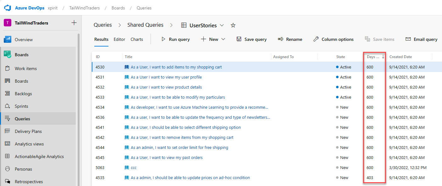 In this post, I will show you how to get how many days work items have been open in Azure Boards.