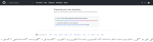 ¡Felicidades! Ha migrado correctamente el repositorio de Azure DevOps a GitHub mediante la opción de importación de código.